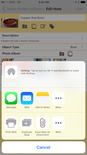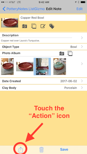 There has been lots of questions about how to share records between 2 devices. This new release is especially exciting for us because it is the first time we are able to offer record sharing! Besides being a cool new feature for PotteryNotes, it is also a first step in our ability to offer full iCloud support to backup and synch between your various devices.